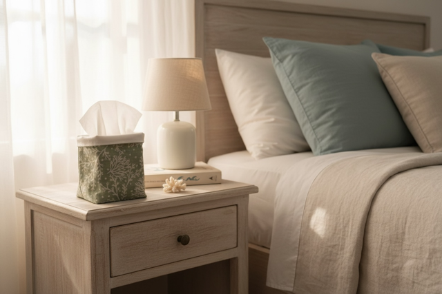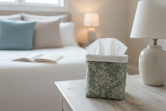 This gorgeous fabric pot in Peony & Sage’s Fidra, Seaweed on Dune with natural linen lining is the perfect storage solution. Whether you chose to use it in the bathroom, bedroom or on your desk, they are decorative and functional