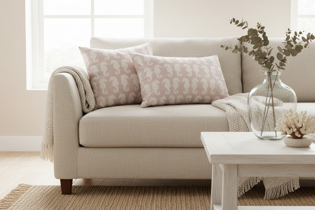 Seahorse - Cream on Pink